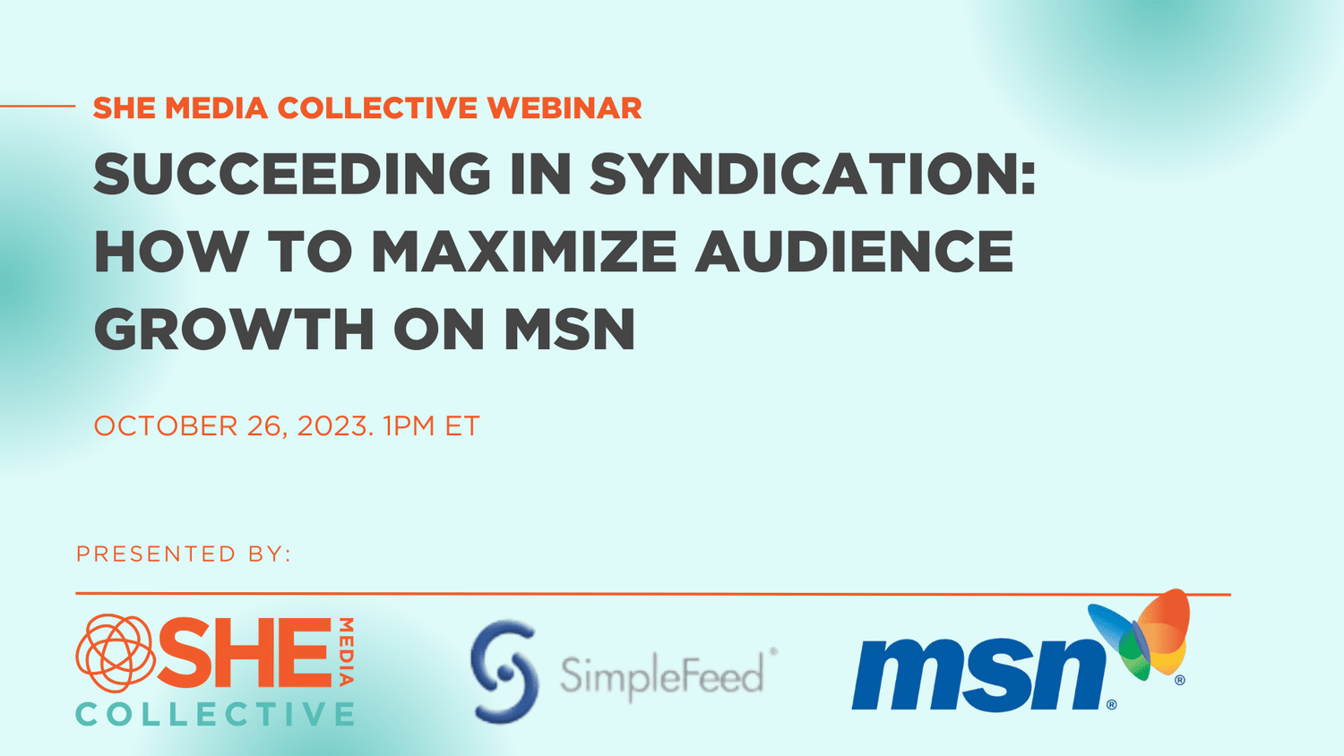 Guest speakers are Ian Kennedy VP, of Partner Success at Simplefeed (SHE Media’s syndication partner), and Piper Essick, Creator Experience Manager at Microsoft.